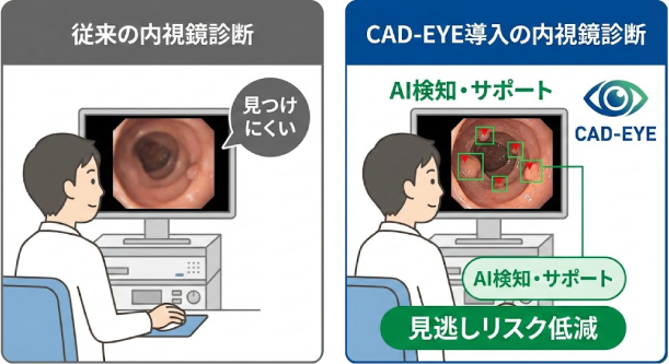 CADEYEは、内視鏡画像をリアルタイムに解析し、ポリープや微細な病変を瞬時に検出・評価するAIサポートシステムです。
